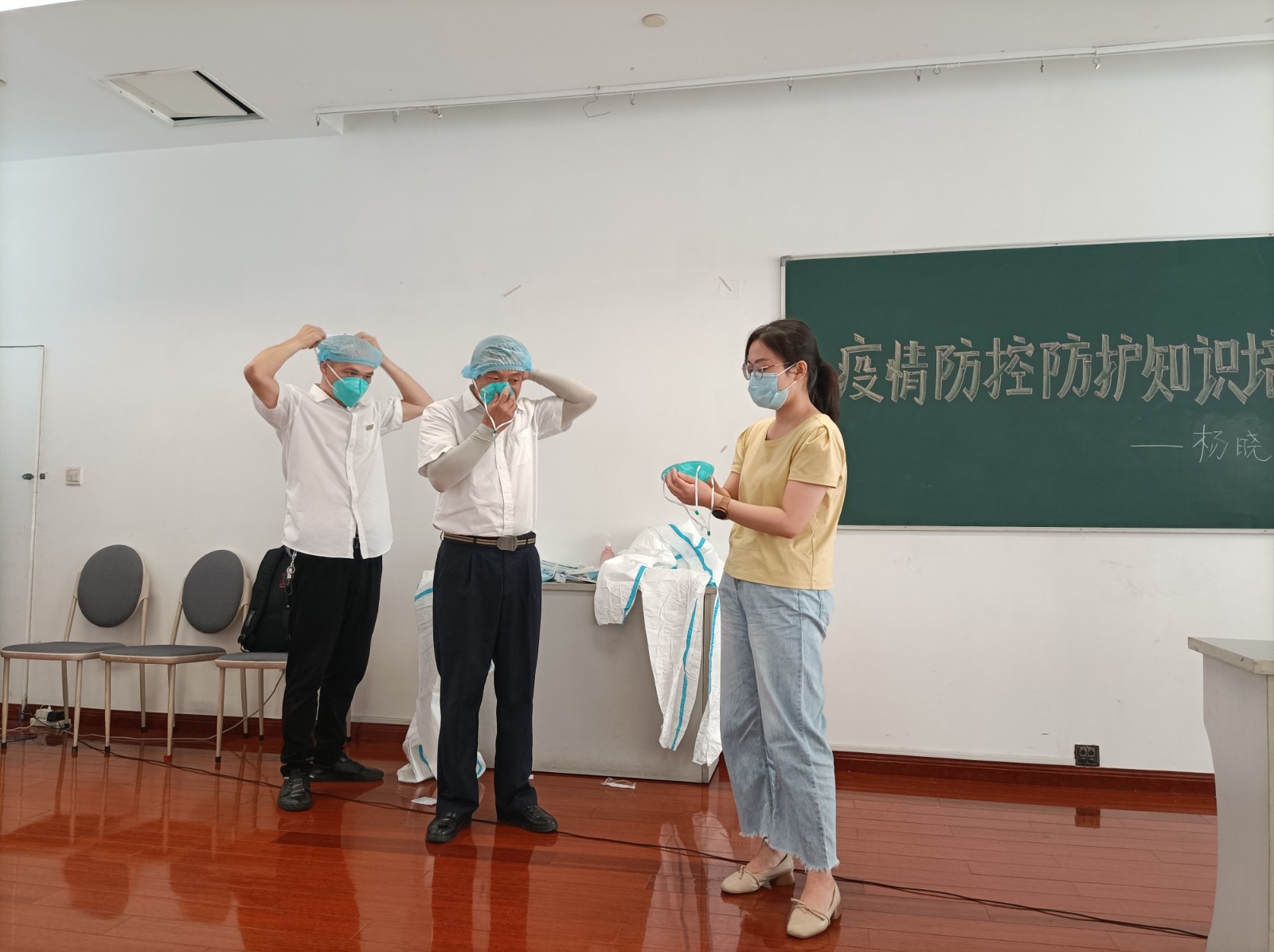 培訓(xùn)中,楊曉對(duì)如何正確有效的自身洗消進(jìn)行了專業(yè)示范,對(duì)防護(hù)服的穿、脫流程和注意事項(xiàng)進(jìn)行了詳細(xì)分步解說。為確保駕駛員能迅速掌握防疫知識(shí)和技能并有效運(yùn)用到平時(shí)的工作中去,楊科長邀請(qǐng)兩名駕駛員上臺(tái)現(xiàn)場演練防護(hù)服的穿、脫步驟,同時(shí)邊指導(dǎo)邊著重指出需要注意的地方,讓大家印象更加深刻。